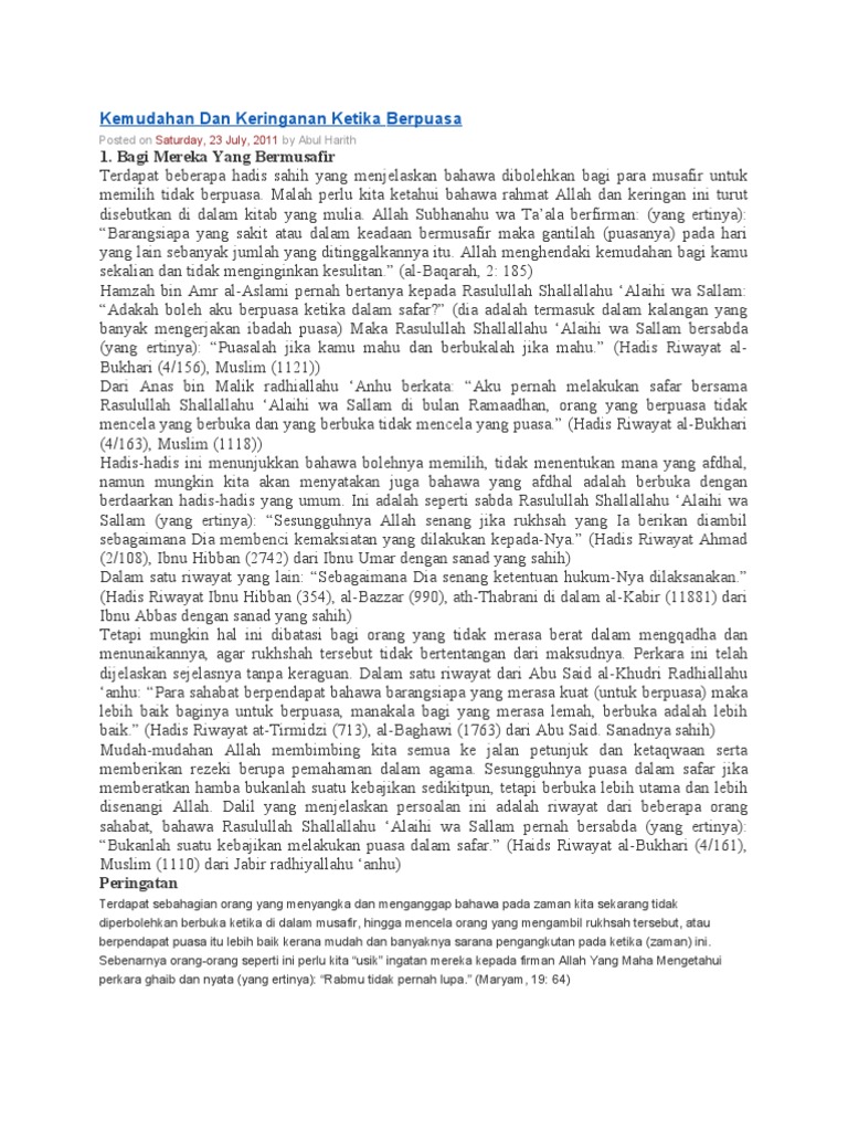Dari malik dari nafi' bahwasanya ibnu umar ditanya tentang. Dari abu hurairah ra, rasulullah saw bersabda: إني لا أطيقه ، فقالا : Berikut pembahasan materi kultum singkat tentang ikhlas: Bagi orang yang sakit dan ada harapan sembuh, yang sekiranya jika ia berpuasa sakitnya makin parah atau atas rekomendasi dokter ia perlu berbuka, boleh baginya untuk tidak berpuasa dan wajib atasnya untuk mengganti puasa ramadhan yang ditinggalkannya itu.